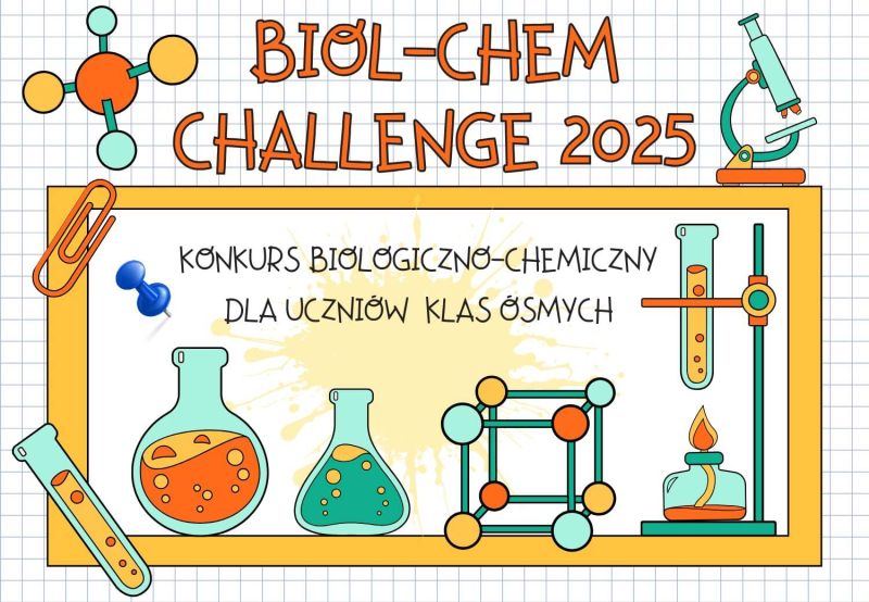 Serdecznie zapraszamy uczniów klas VIII szkoły podstawowej do udziału w Konkursie Biologiczno-Chemicznym „BIOL-CHEM CHALLENGE 2025”, który odbędzie się 18 listopada 2025 roku. Szczegółowe informacje - czytaj więcej.