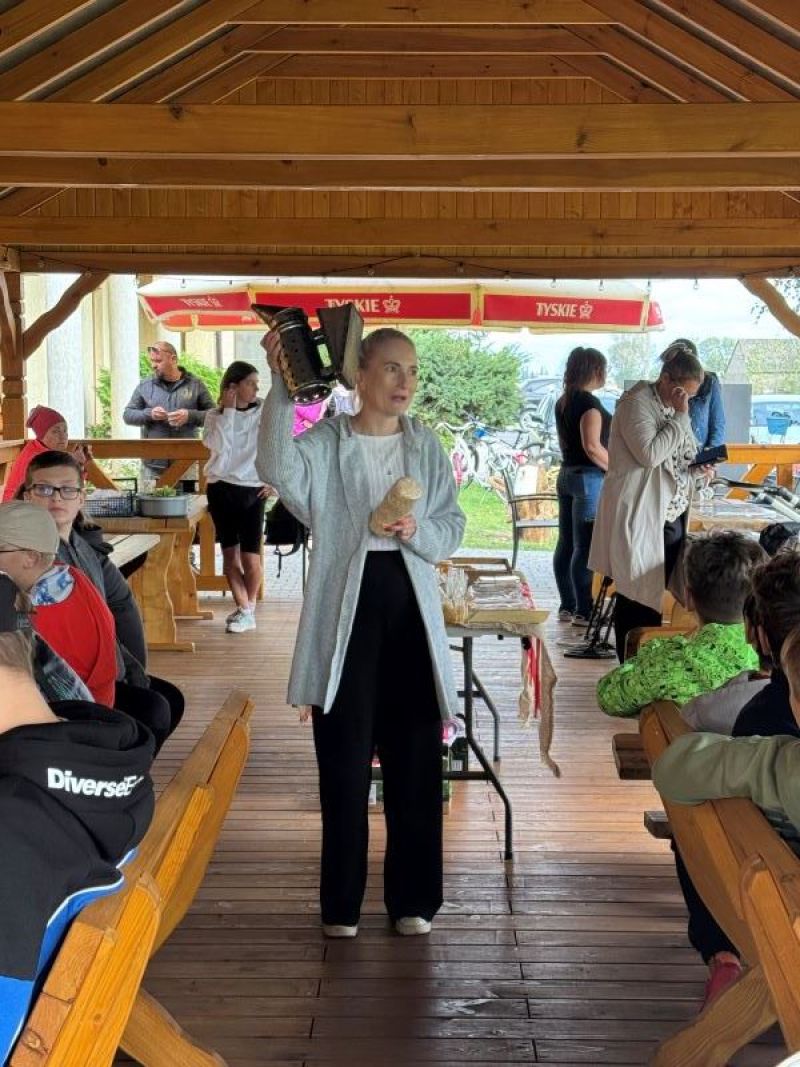25 września 2024 roku  odbył się rajd rowerowy pn. „Jedziemy na zdrowie!”, w którym udział wzięli uczniowie i nauczyciele naszego liceum oraz MZS w Radziejowie. Sympatycy dwóch kółek wystartowali o godzinie 8.30 spod pomnika Władysława Łokietka do Płowiec, gdzie na cyklistów czekało wiele atrakcji. W Płowcach uczniowie zostali przywitani przez przedstawicieli Stowarzyszenia Poszukiwawczo-Historycznego „Łokietek”, zapraszając do wspólnej zabawy. Uczniowie otrzymali mapki terenu, które wskazywały miejsce ukrytych zagadek, po rozwiązaniu których w nagrodę każdy otrzymał monetę z wizerunkiem Władysława Łokietka. Ciekawe było móc zobaczyć proces wybijania monet i posłuchać historycznych opowieści. Uczniowie mogli zapoznać się z działaniem wykrywacza metali i podziwiać znaleziska Stowarzyszenia „Łokietek”. Po aktywnej zabawie nadszedł czas na pyszny i zdrowy posiłek! Uczniowie mając na stołach ogrom warzyw i innych zdrowych produktów, przygotowali wspaniałe i kolorowe kanapki. Przedstawicielki Stacji Sanitarno - Epidemiologicznej w Radziejowie omówiły zasady zdrowego odżywiania, a także zachęcały do aktywności fizycznej, dzięki której ciało pozostaje w dobrej formie. Nie zabrakło też słodkiego akcentu! Pani Daria Mrówczyńska z Gminnego Ośrodka Kulturalno Bibliotecznego w Skibinie w ciekawy sposób opowiedziała o swoich pszczołach, o hodowli tych cennych owadów, pokazała niezbędne rekwizyty używane w pasiece oraz zachęciła wszystkich do jedzenia miodów, które mają korzystny wpływ na nasze zdrowie. Prezentacja pszczelich specjałów rozbudziła apetyt na coś słodkiego, dlatego na stołach nie mogło zabraknąć pysznych i soczystych owoców. Pobyt w Płowcach urozmaicony został także aktywnością na trawie, bieganiem, graniem w piłkę i zabawą w chowanego. Uczniowie liceum i Miejskiego Zespołu Szkół w Radziejowie integrowali się i wspólnie bawili. Wszyscy uśmiechnięci i pełni dobrej energii, po zjedzeniu zdrowej zupy kalafiorowej, ruszyli na swoich niezawodnych rowerach w drogę powrotną do szkoły. Dziękujemy Zajazdowi "Łokietek" w Płowacach za gościnę. To był wspaniały dzień!