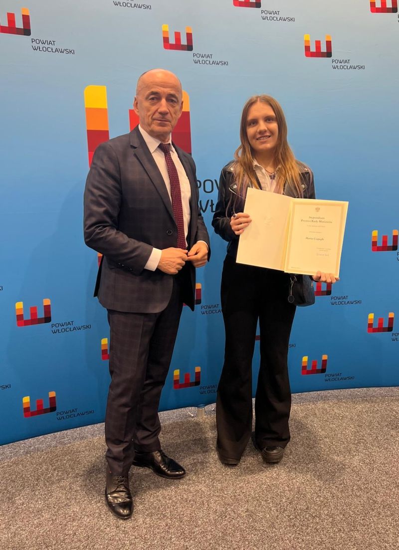 W poniedziałek 17 listopad 2025 roku nasza uczennica Marta Czupajło otrzymała stypendium Prezesa Rady Ministrów. Uroczystość wręczenia dyplomów odbyła się w Powiatowym Centrum Kształcenia Zawodowego i Ustawicznego w Chodczu.