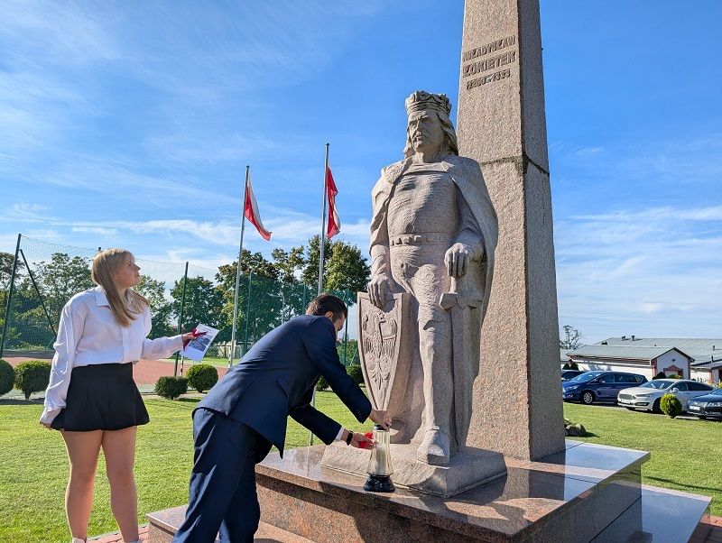 26 września 2025 roku społeczność Zespołu Szkół i Placówek w Radziejowie świętowała Dzień Patrona Szkoły. Na uroczystym apelu przygotowanym przez klasę III d wspominaliśmy niezwykłą postać Króla Władysława Łokietka – człowieka wielkiego, mężnego, niestrudzonego w walce i dążeniu do celu. Króla, który wsławił się nie tyko zwycięstwem nad Krzyżakami, ale również walką z wieloma przeciwnościami losu, gdyż nie szczędziła mu ich historia i czasy, w jakich żył. Bohaterstwo Władysława Łokietka na zawsze związało go z Kujawami. Na naszej ziemi, polach płowieckich, w szumie wiatru, falujących zbożach, śpiewie ptaków splata się historia z legendą o Królu i jego wojach. My uczniowie „Łokietka” z dumą nosimy imię Naszego Patrona – to nasza historia, nasze dziedzictwo i wartości, które wciąż nas inspirują. Uczniowska delegacja z Ośrodka zapaliła znicz pod pomnikiem Władcy, a przedstawiciele Liceum złożyli kwiaty wyrażając szacunek dla jego dziedzictwa. Podczas uroczystości przewodniczący Samorządu Uczniowskiego Liceum – Maciej Czynsz ogłosił wyniki konkursu „ Aktywna klasa”. W rywalizacji trwającej cały rok szkolny 2024/2025 zasłużone zwycięstwo odniosła klasa III d. Na kolejnych miejscach uplasowały się: klasa II ab - miejsce II i klasa III b - miejsce III. Dyrektor Grzegorz Sobczak pogratulował zwycięzcom i wręczył przewodniczącym klas nagrody w wysokości 1500, 1000 i 500 złotych. W ramach obchodów Dnia Patrona odbył się również konkurs plastyczny przygotowany przez Samorząd Uczniowski SOSW na projekt monety z wizerunkiem króla Władysława Łokietka. Bardzo dziękujemy uczniom za zaangażowanie i ciekawe prace!