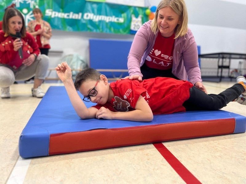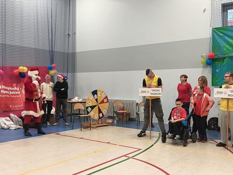 5 grudnia 2025 roku dwoje uczniów naszej szkoły - Bogusia Zdzichowska oraz Łukasz Jaskólski - uczestniczyli w XV Kujawsko-Pomorskim Dniu Treningowym Programu Treningu Aktywności Motorycznej Olimpiad Specjalnych w Chełmnie. Łukasz dzielnie walczył w trzech konkurencjach: przetoczenie, przechodzenie przez tunel, rzut piłeczką do celu. Bogusia wzięła udział w przechodzeniu po ławeczce-równoważni, zbijaniu kręgli oraz strzale do bramki. Młodzi sportowcy poradzili sobie wspaniale. Zdobyli złote medale oraz odebrali upominki od specjalnego gościa – Świętego Mikołaja. Pełni pozytywnych wrażeń oraz motywacji do dalszych ćwiczeń są gotowi na nowe wyzwania!