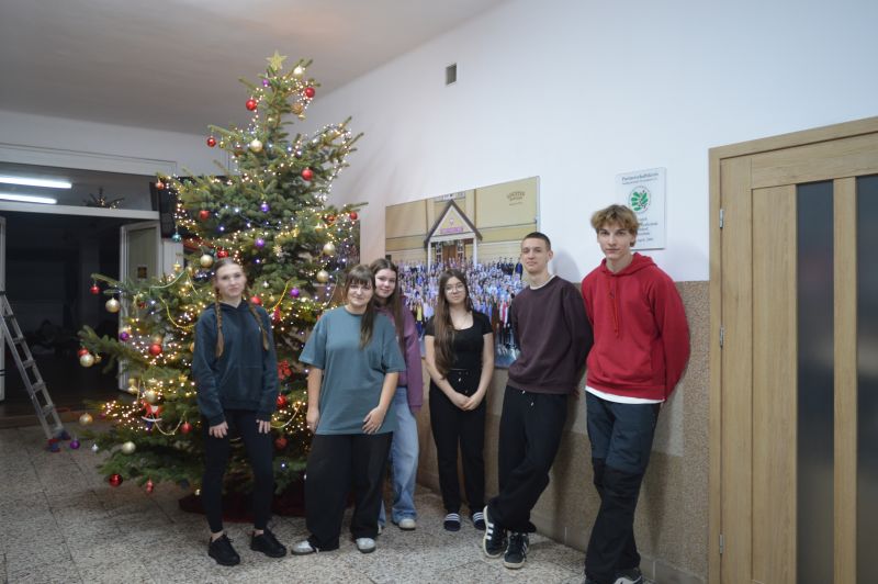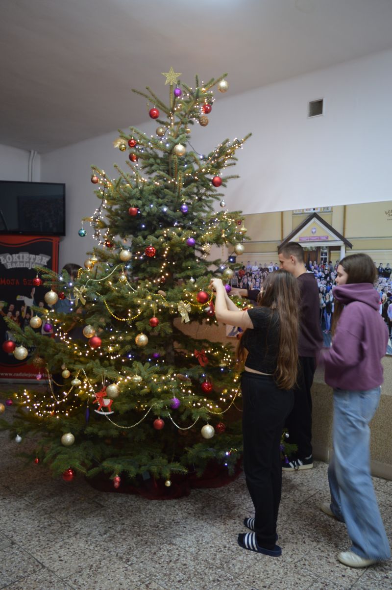 Z piątku na sobotę 5-6 grudnia 2025 roku w naszym liceum odbyła się kolejna, tym razem Mikołajkowa Noc w Szkole. W wydarzeniu udział wzięło 60 uczniów. Tegoroczne spotkanie upłynęło w niezwykle świątecznej atmosferze. Uczniowie mogli spróbować swoich sił w piłce siatkowej i tenisie stołowym, a także wziąć udział we wspólnym dekorowaniu choinki na korytarzu szkolnym, które stało się jednym z bardziej integrujących punktów programu. Wieczór urozmaiciły świąteczne seanse filmowe, a wyjątkowym momentem był koncert na żywo, przygotowany przez zespół Aqustyki. Na uczestników czekał również poczęstunek, który pozwolił wszystkim odzyskać energię i spędzić czas w miłej, koleżeńskiej atmosferze. Warto nadmienić, że była to impreza o charakterze charytatywnym. Całkowity zysk z wydarzenia zostanie przekazany na pomoc potrzebującym, co sprawia, że wspólnie spędzony czas nabrał dodatkowej wartości. Dziękujemy wszystkim za obecność i zaangażowanie.